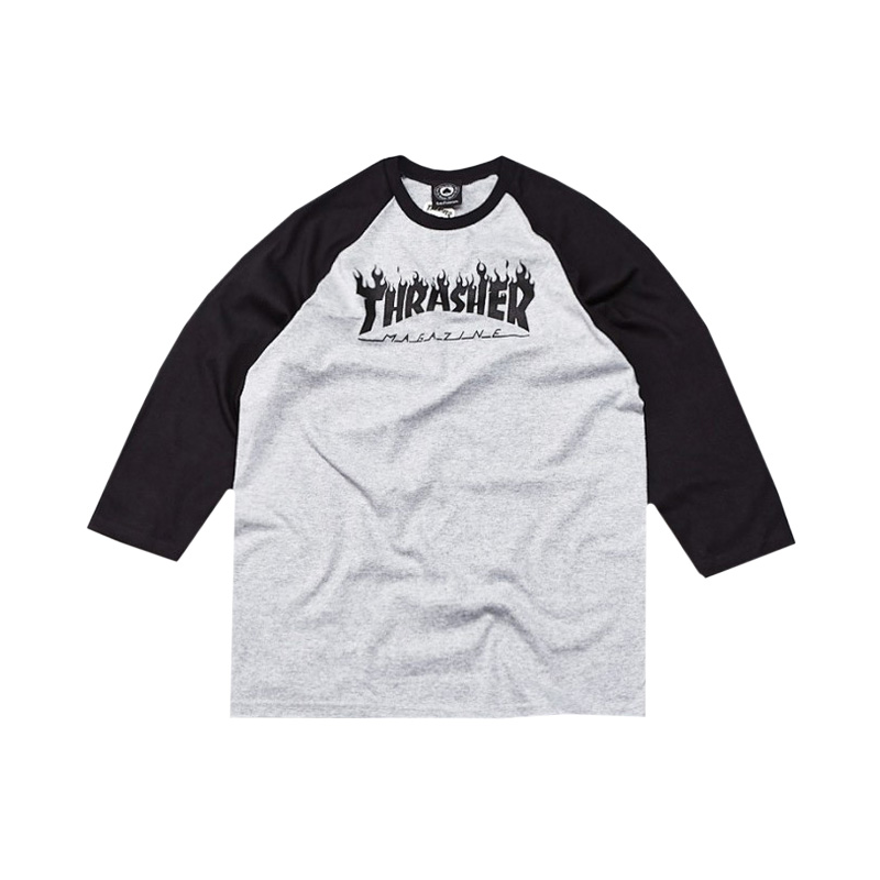 THRASHER T-SHIRT FLAME RAGLAN GREY BLACK