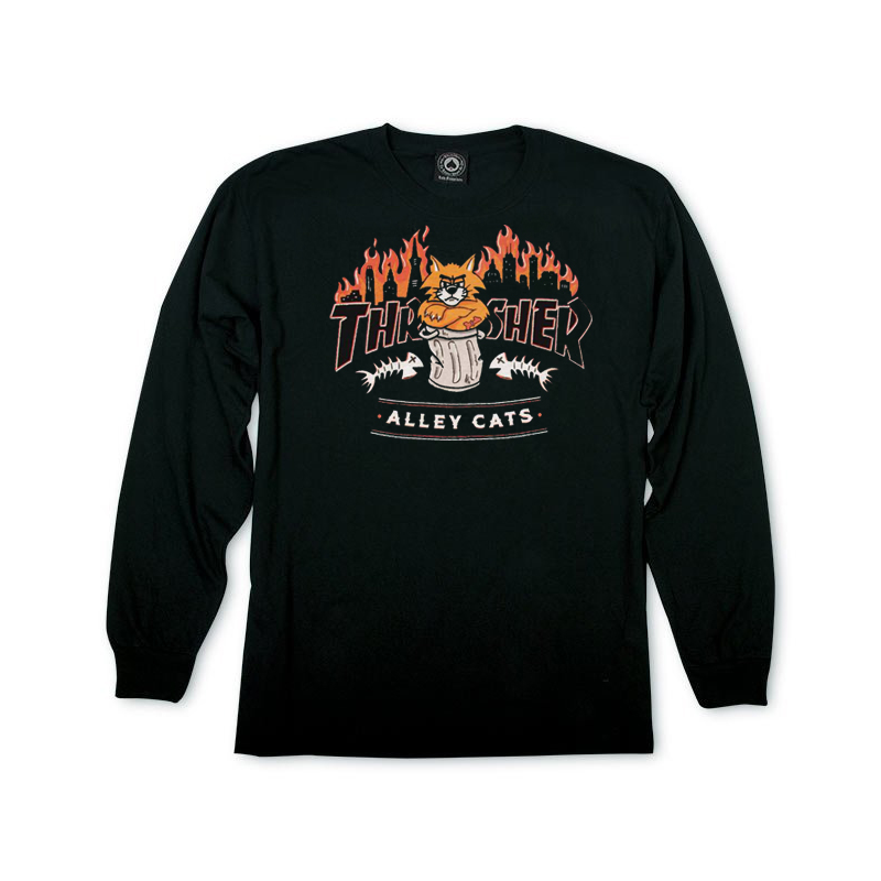 THRASHER T-SHIRT ALLEY CATS LS BLACK