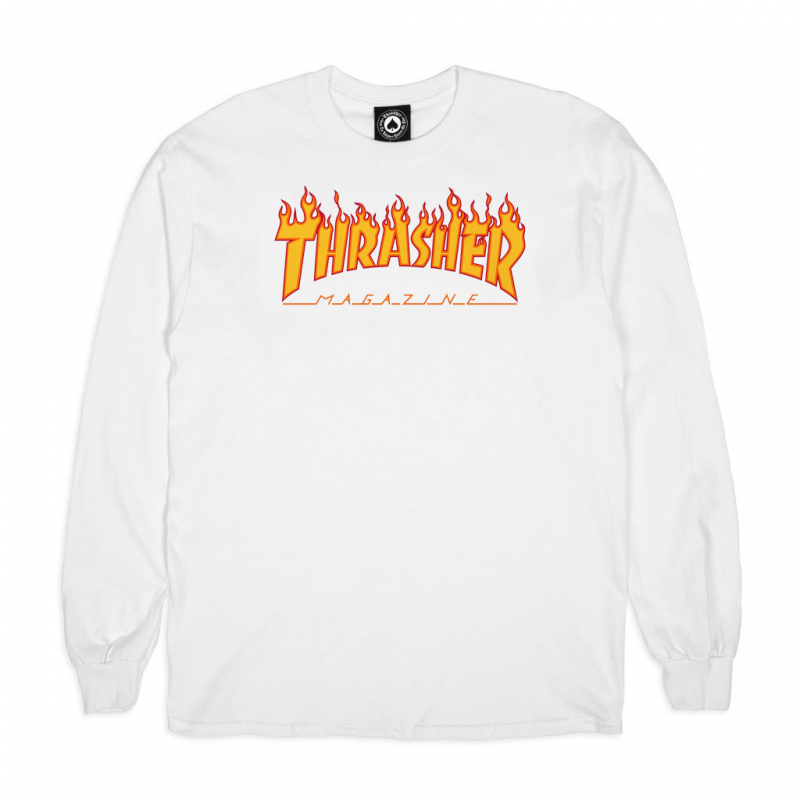T-shirt à col rond et manches longues de la marque Thrasher, imprimé sur la poitrine.