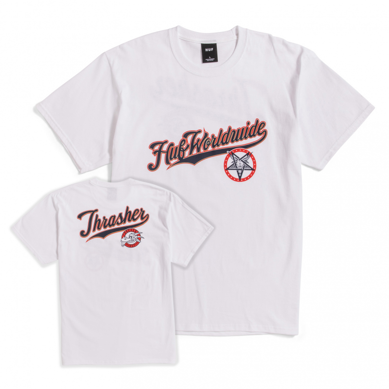 T-shirt à manches courtes et col rond de la marque HUF en collaboration avec le magazine Thrasher.