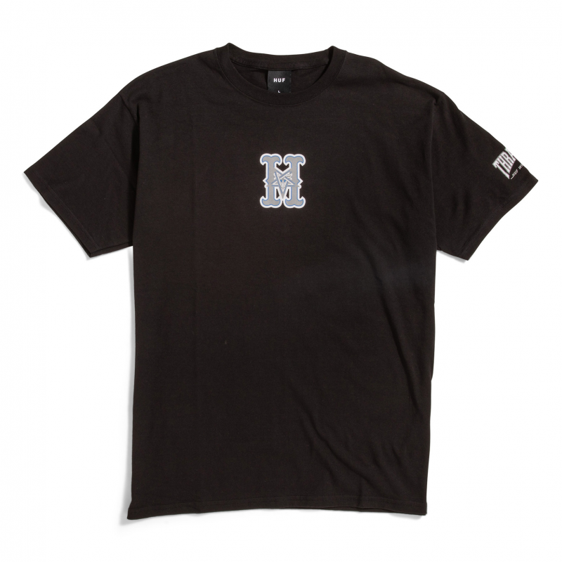 T-shirt à manches courtes et col rond de la marque HUF en collaboration avec le magazine Thrasher.