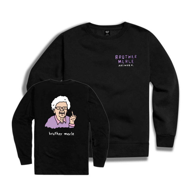 T-shirt à col rond et manches longues de la marque Brother Merle, illstration imprimée devant et dans le dos du vêtement.
