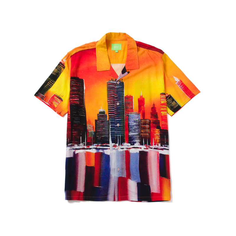 Chemise à boutons et manches courtes, marque HUF, 100% coton.