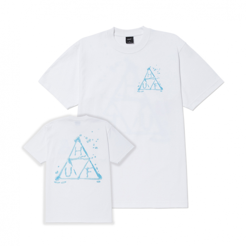 T-shirt à col rond et manches courtes de la marque HUF, logo imprimé devant et derrière du vêtement.