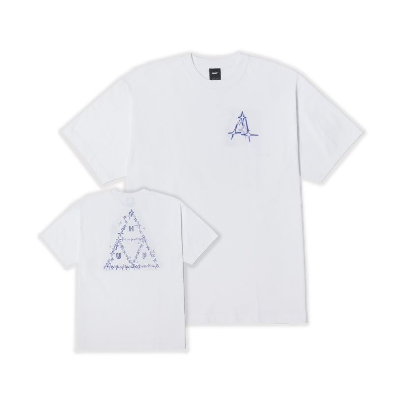 T-shirt à col rond et manches courtes de la marque HUF, logo imprimé devant et derrière.