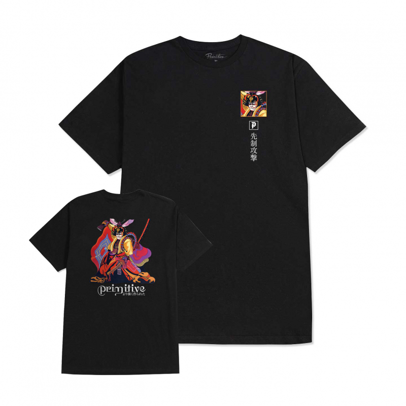 T-shirt à col et manches courtes de la marque Primitive, illustration imprimée devant et derrière