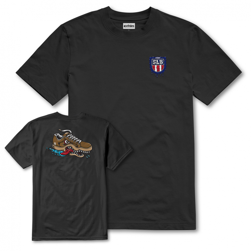 Le Etnies SLB x Jimbo Tee noir rend hommage à une chaussure culte du skate, la SLB de Sal Barbier, à travers une illustration exclusive signée Jimbo Phillips, artiste incontournable de l'univers skate.