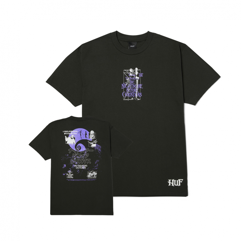 Le HUF Nightmare SS Tee Vintage Black rend hommage à l'univers culte de The Nightmare Before Christmas avec une collaboration exclusive entre HUF et Disney Tim Burton.